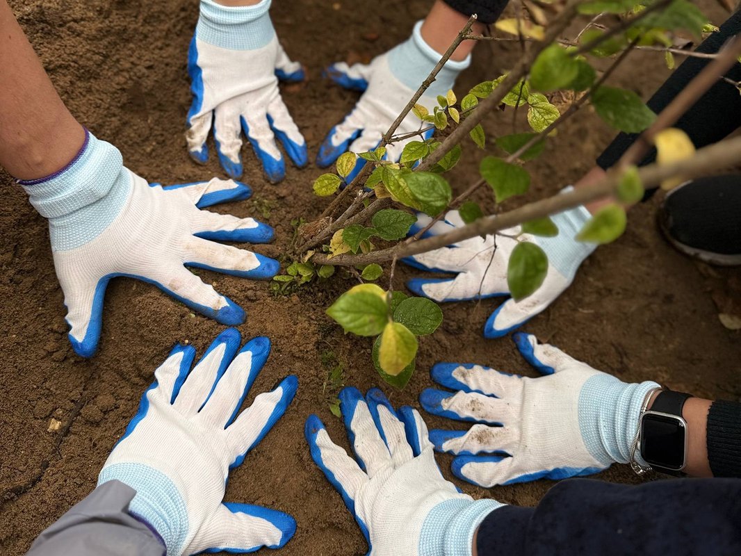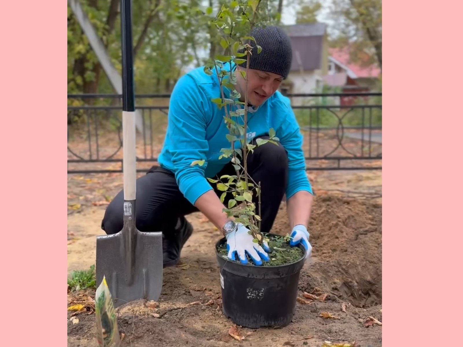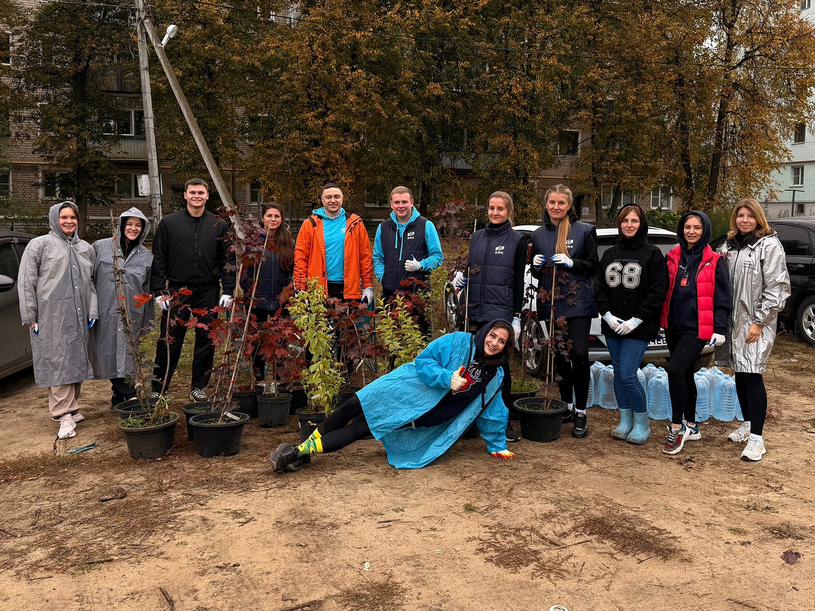 Напротив дома №25А волонтёры посадили 15 красных клёнов и 4 кустарника.