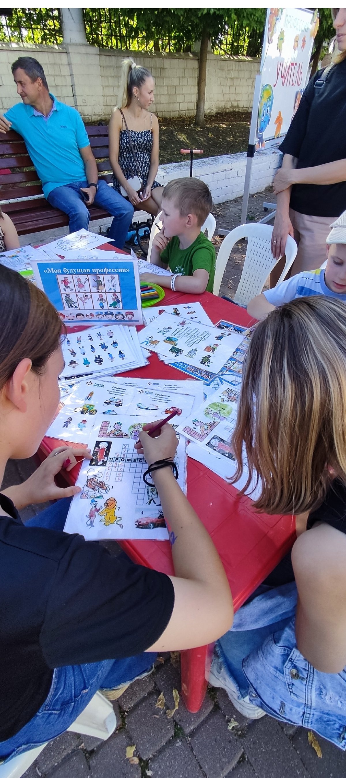 Совет Первых подготовил специальную площадку, где каждый ребёнок смог прочувствовать момент выбора профессии: познакомиться с самыми интересными, попробовать себя в творческих и спортивных заданиях, проявить смелость, ловкость и командный дух. Ребята с увлечением выполняли задания, рисовали, мастерили и участвовали в активностях.