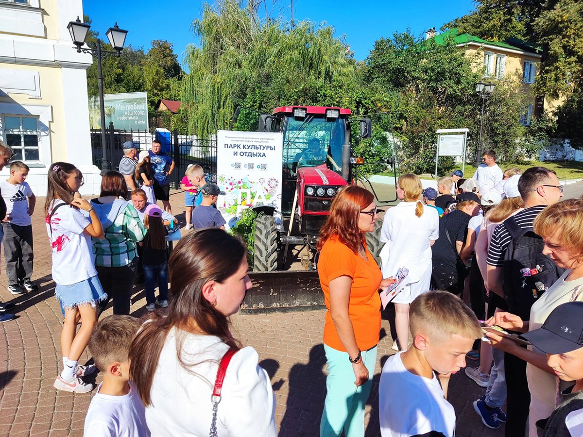 От хозяйственного участка вышел водитель Алексей Подуруев. Чтобы посидеть и сфотографироваться за рулём его трудолюбивого трактора «Беларус», выстроилась большая очередь желающих. Теперь дети знают, как красивый трактор помогает поддерживать чистоту и порядок в парке, лесопосадке, на набережной Верхнего пруда и других территориях исторического центра города.