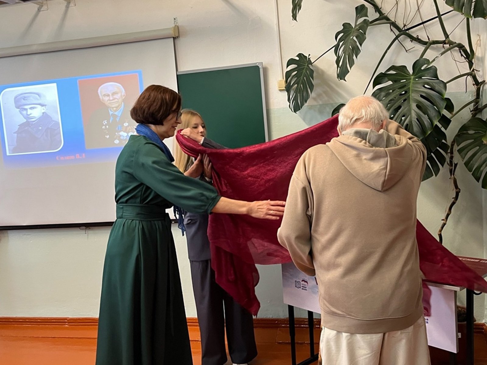 Почётное право открыть «Парту героя» предоставили Елене Бубновой, ученице 9 класса, отличнице, активной участнице муниципальных творческих конкурсов, и Леонтию Силаеву, сыну Владимира Леонтьевича. После рассказа ведущих о героическом пути ветерана слово взял его сын, Леонтий Владимирович. Он рассказал о том, каким был его отец.