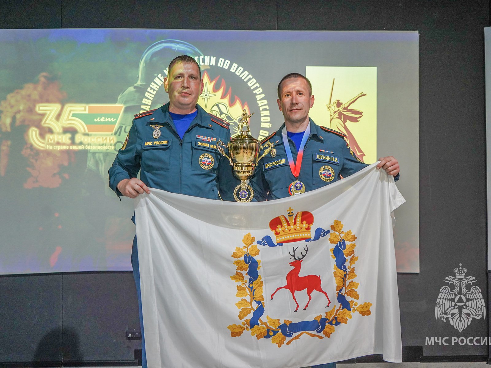 По итогам всех испытаний победителем стал Николай Шубин, начальник караула 65 пожарно-спасательной части 8 ПСО Выксунского округа. Ему вручили кубок победителя и медаль.